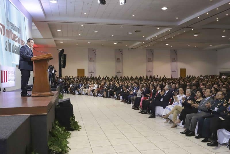 Crear una sociedad basada en el mérito, abatir la pobreza extrema, seguir creciendo y generar más empleos es el camino para continuar construyendo acuerdos y consenso y así lograr en los próximos años propósitos comunes, afirmó el Gobernador Marco Mena al dar el mensaje con motivo de su Tercer Informe de Gobierno.