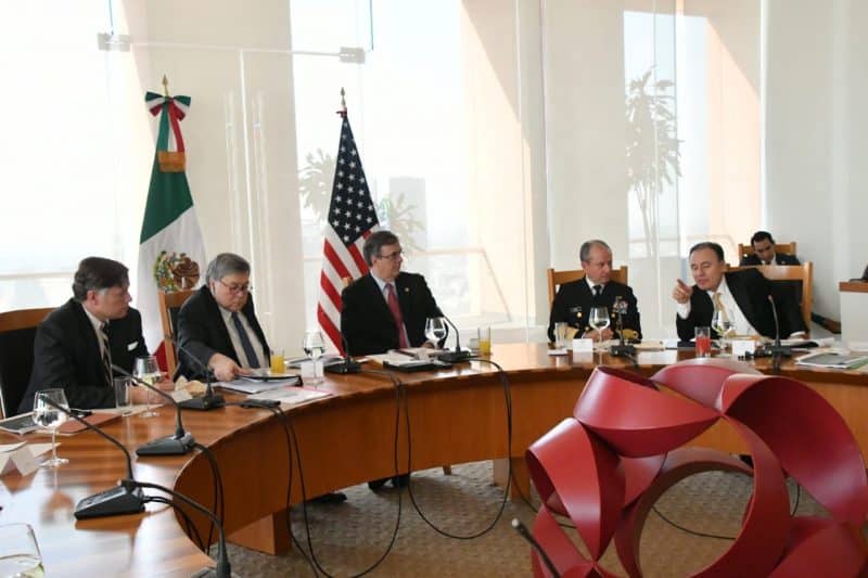 El día de hoy en la Secretaría de Relaciones Exteriores se llevó a cabo una reunión bilateral con Estados Unidos en materia de seguridad. En el encuentro participaron los secretarios de Relaciones Exteriores, Marcelo Ebrard Casaubon; de Seguridad y Protección Ciudadana, Alfonso Durazo Montaño; y de Marina, Almte. José Rafael Ojeda Durán. El fiscal general William Barr y el embajador Christopher Landau encabezaron la delegación por parte de los Estados Unidos. Previamente celebraron un encuentro con el presidente Andrés Manuel López Obrador en el que también participó el secretario de la Defensa, general Luis Crescencio Sandoval González.