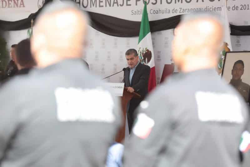 “La mejor forma de honrar la memoria de los policías caídos en el cumplimiento de su deber, es seguir luchando con toda la fuerza de las instituciones por un Coahuila de paz, donde impere la Ley, donde las familias salgan a la calle y los jóvenes se preparen en las aulas para el futuro.