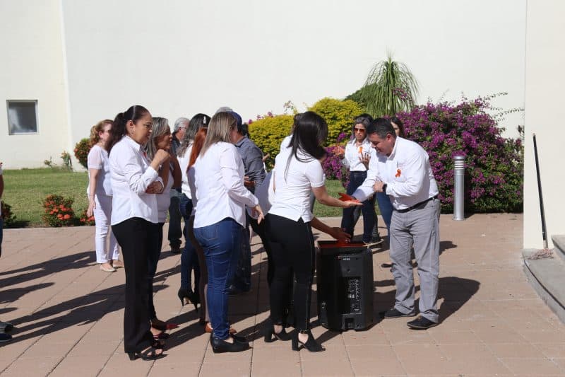 El subsecretario de Estudios, Proyectos y Desarrollo, Sergio Piñeiro Camacho, dio a conocer que esta dinámica llamada “Muro Naranja” es una muestra de solidaridad donde se refuerza la lucha por la no violencia contra las mujeres, además, con ello se contribuye a sensibilizar al personal en el tema.