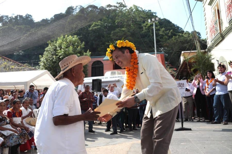 Ixhuatlán de Madero, Ver., 06 de diciembre de 2019.- En gira de trabajo por la zona norte, el gobernador Cuitláhuac García Jiménez entregó 300 actas de nacimiento extemporáneas, en español y lengua materna, a personas de la tercera edad.