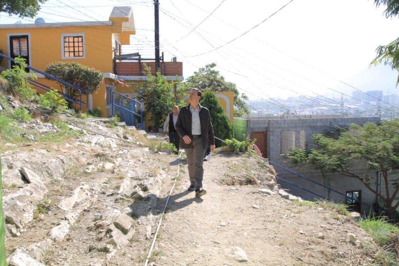 En un recorrido casa por casa en la colonia Altamira, Eugenio Montiel Amoroso, Director General del Instituto de la Vivienda y de Fomerrey, constató la necesidad de que estas casas contaran con una loza de concreto.