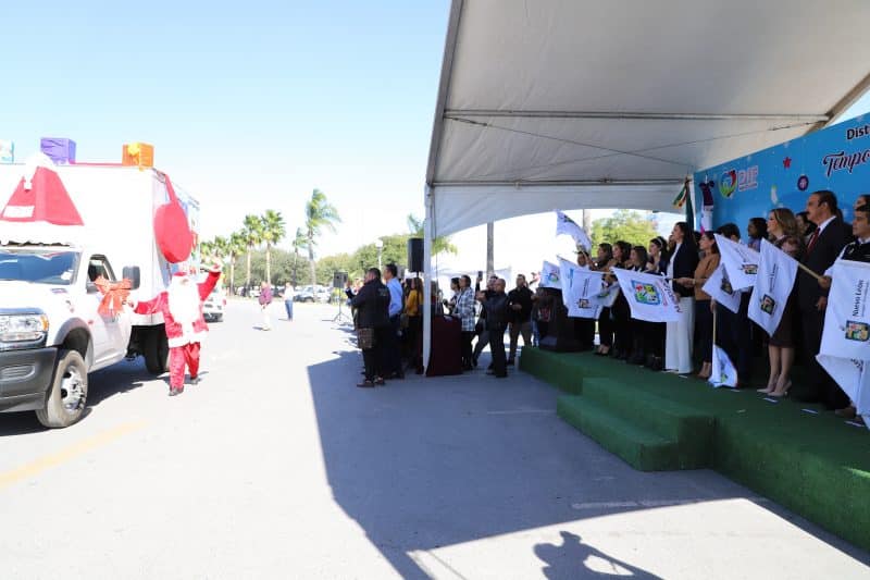 Al evento acudió Manuel de la O, Secretario de Salud, quien junto al Director del DIF Nuevo León, Erik Caballero de León, presidentas y directoras de los DIF municipales, presenciaron el desfile de vehículos, adornados con temas navideños, donde se trasladarán los apoyos a cada municipio.