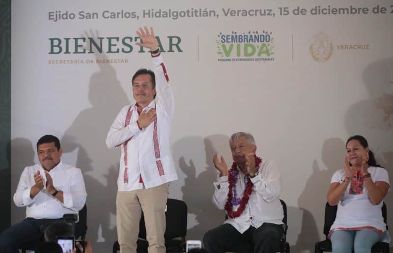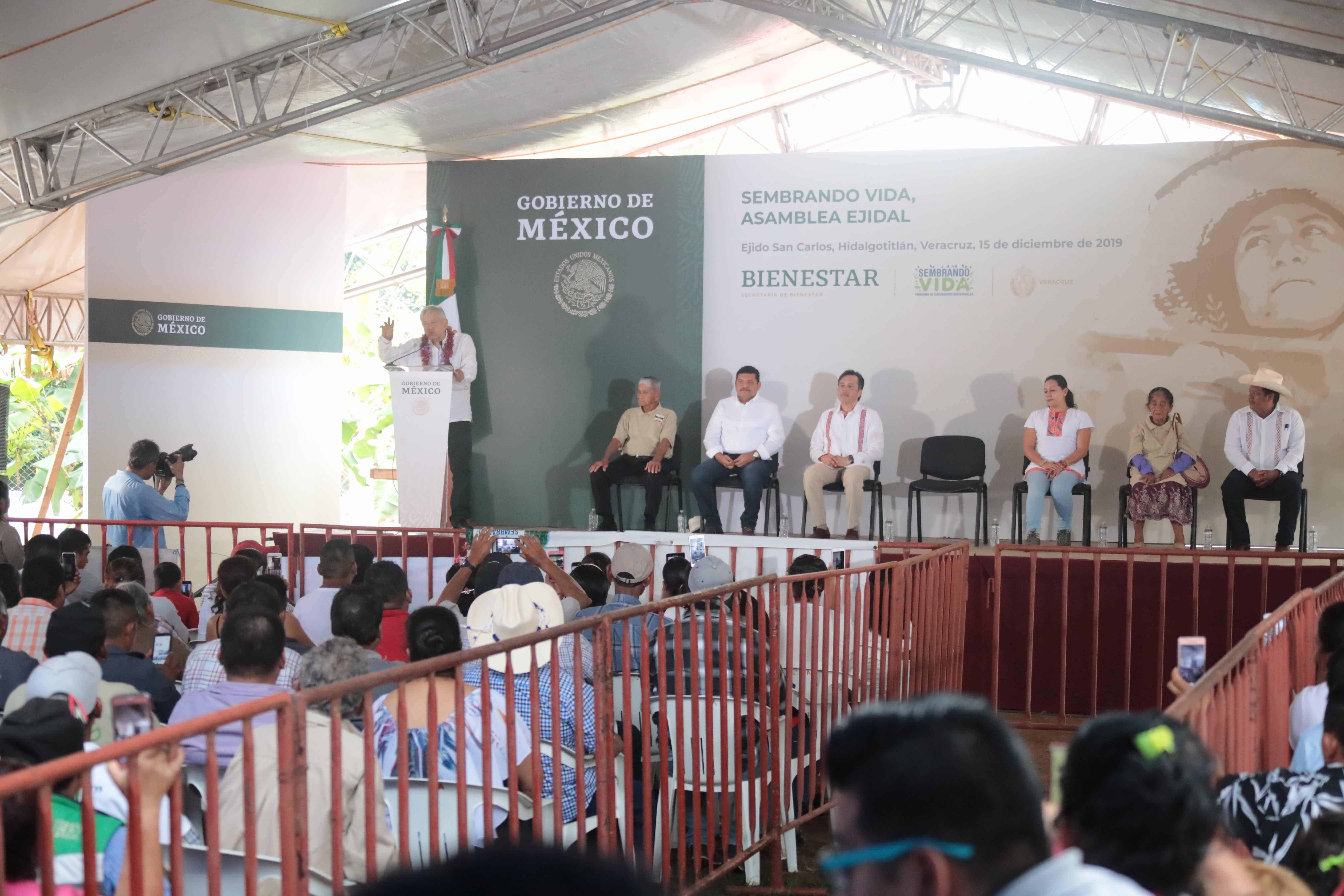Hidalgotitlán, Ver., 15 de diciembre de 2019.- En su visita al ejido San Carlos, el presidente de la República Andrés Manuel López Obrador y el gobernador Cuitláhuac García Jiménez se comprometieron a reconstruir con concreto hidráulico la carretera que va de Minatitlán a Hidalgotitlán.