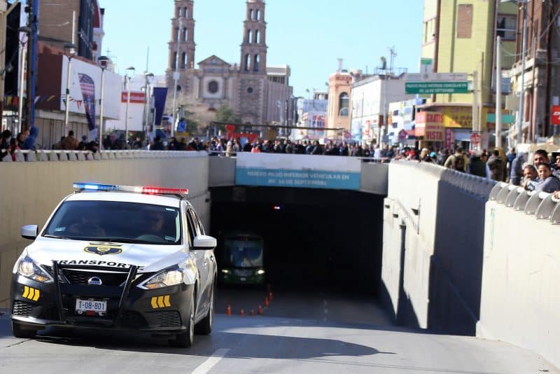 Acompañado del alcalde Armando Cabada y funcionarios de la SecretarÍa de Desarrollo Urbano y Ecología del Estado, así como de la Cámara de Mexicana de la Industria de la Construcción, el gobernador atestiguó una prueba de urbanismo táctico a la que sometieron los camiones de la nueva Ruta Troncal Tecnológico dentro del túnel de la 16 de Septiembre.