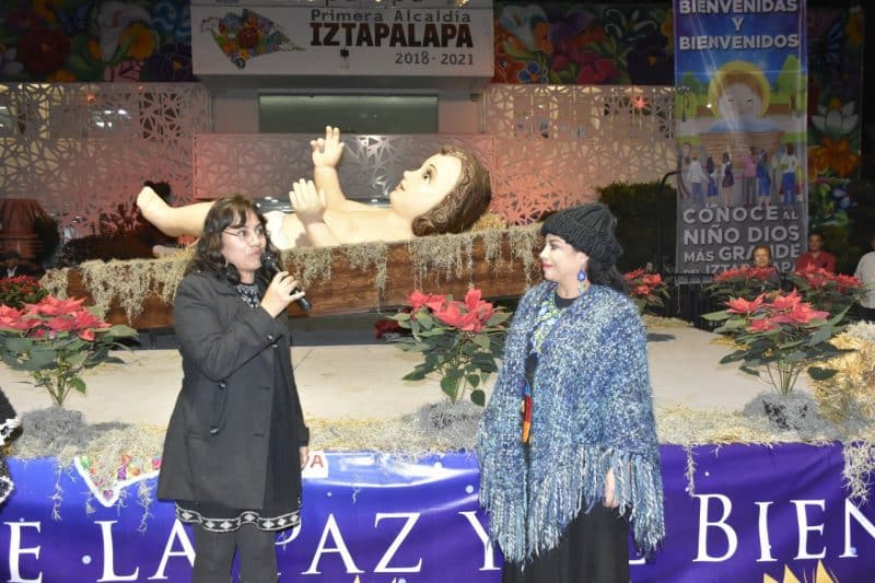 También estuvo cerca del Niño Dios monumental, de tres metros de estatura, elaborado por artesanos de la unidad habitacional Ermita Iztapalapa, el cual fue considerado hace algunos años como el más grande del mundo y que fue hecho como una forma de representar la conservación de las tradiciones navideñas en la demarcación.