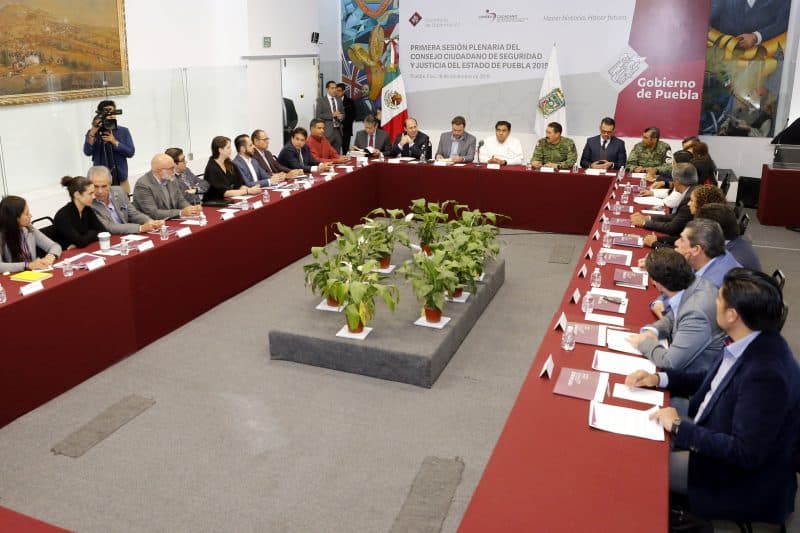 Lo anterior fue expuesto por el mandatario al presidir la Primera Sesión Plenaria del Consejo Ciudadano de Seguridad y Justicia del Estado de Puebla que encabeza Gerardo García Pedroche, quien además rindió su Primer Informe de Actividades 2018-2019.
