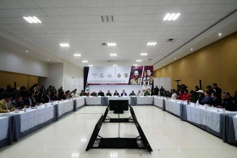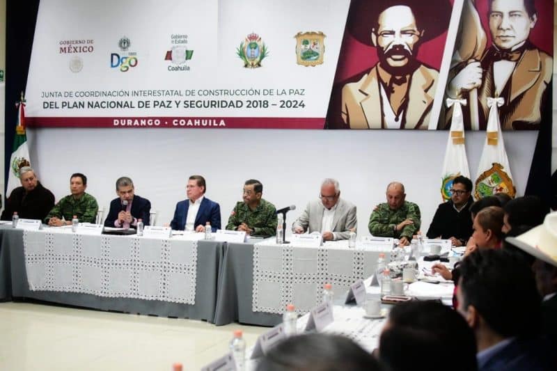 Presiden gobernadores de Coahuila y Durango la Junta de Coordinación Interestatal de Construcción de La Paz del Plan Nacional de Paz y Seguridad