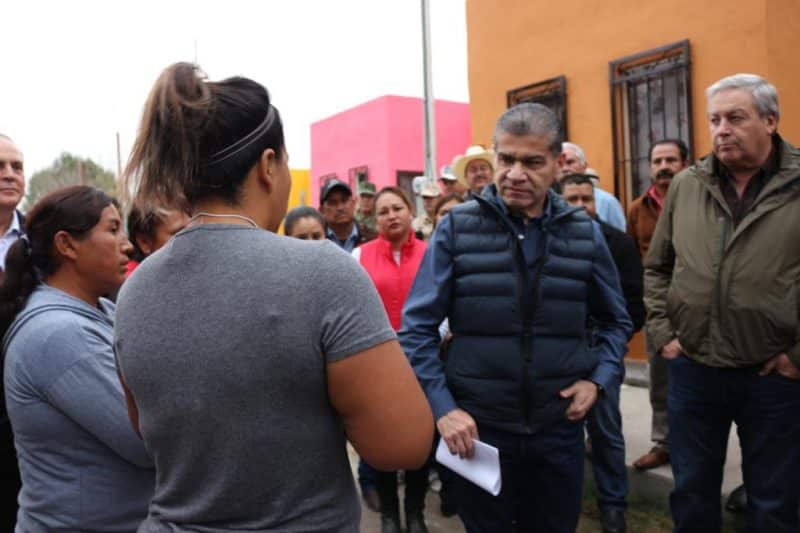 El Gobernador de Coahuila supervisó los trabajos de rehabilitación de viviendas, la Presidencia Municipal, escuelas y parroquias dañadas el pasado 30 de noviembre y donde gracias al esfuerzo conjunto del Ejército Mexicano y Gobierno del Estado se ha logrado resanar paredes, ventanas, puertas y techos de 109 inmuebles en total; mientras que se encuentran en proceso 21 casas, 2 escuelas y una iglesia.