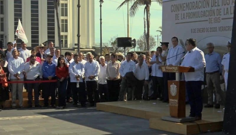 En el 105 Aniversario de la Promulgación de la Ley Agraria de 1915, dijo además que el Gobierno de Veracruz debe preservar e impulsar el ejido, fortaleciendo aquellas comunidades donde este sistema de tenencia prevalece, pues si el mismo no recibe ingresos, entonces se le desmantela; lo cual representa hacer lo mismo con la lucha agraria de México.