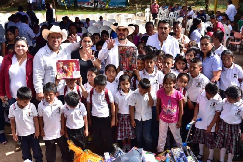 Tatahuicapan, Ver., 09 de enero de 2020.- La Secretaría de Educación de Veracruz (SEV) entregó apoyos del Programa de Mantenimiento de Zonas Federales, así como material didáctico, útiles escolares y regalos del Día de Reyes de la campaña «Dona un Juguete, Dona Amor», en escuelas rurales de municipios como Las Choapas, Tatahuicapan de Juárez, Pajapan y Soteapan, beneficiando a mil 617 estudiantes.