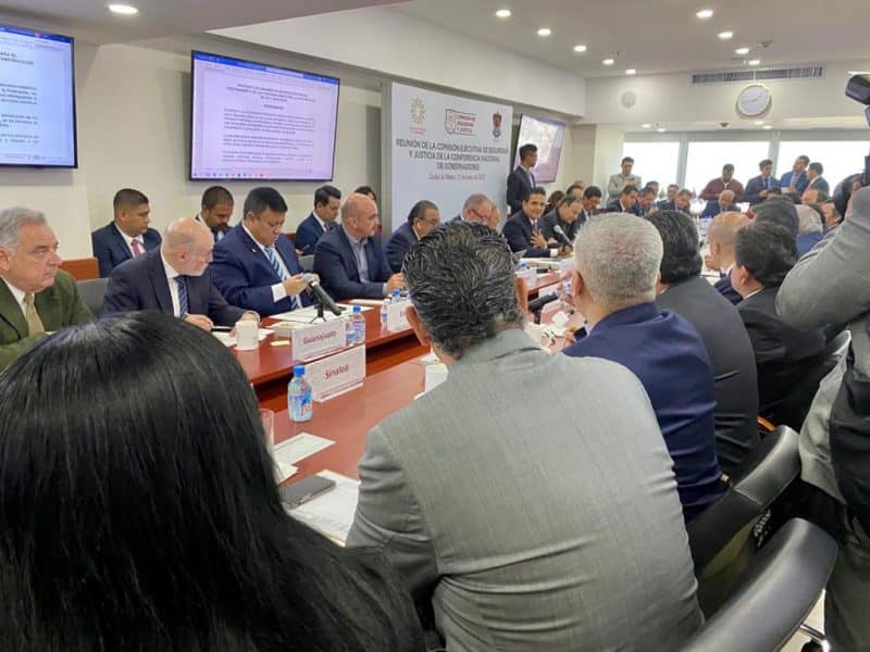 Entre los puntos que se trataron, se encuentra la mecánica operativa de las mesas estatales para la Construcción de Paz y Seguridad, los fondos federales para Estados y Municipios, además de estrategias preventivas de adicciones, y contra la extorsión, entre otros.