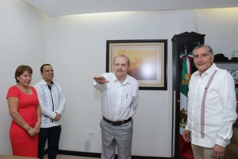 En la ceremonia, el mandatario Adán Augusto López, hizo un reconocimiento al trabajo desempeñado por Guillermo Narváez Osorio durante el tiempo que estuvo al frente de la Secretaría de Educación.