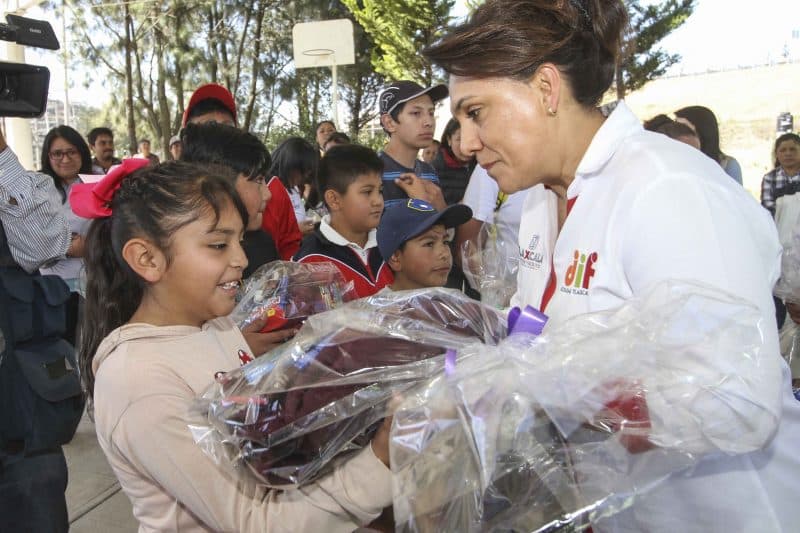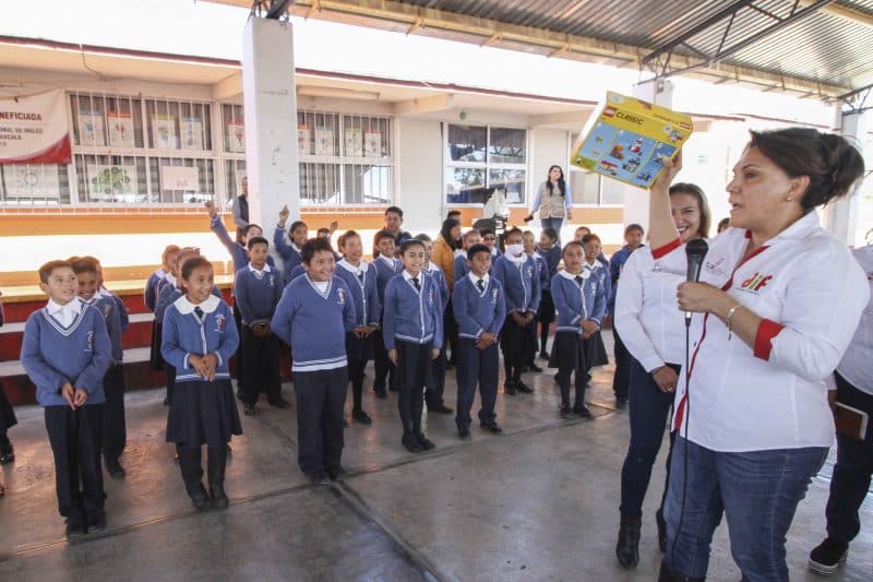Finalmente, Sandra Chávez Ruelas visitó la primaria “Gabriela Mistral” en Hueyotlipan, donde los alumnos recibieron un juguete, prendas de vestir abrigadoras, un libro para colorear y pinturas.