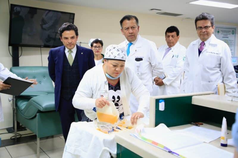 Acompañado por personal médico y del Hospital de Especialidades, Zoé Robledo visitó el área de Aféresis, donde se lleva a cabo el proceso de separación de los componentes de la sangre: plasma, plaquetas o glóbulos rojos.