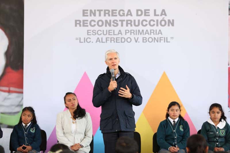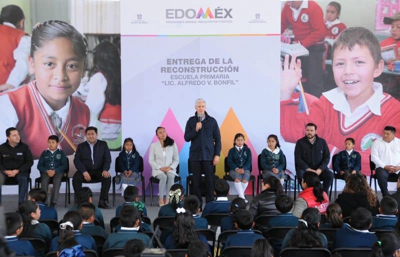 “Nos da mucho gusto que como símbolo y recuerdo de hace dos años, cuatro meses, que tuvimos este lamentable caso en el Estado de México, en el centro del país, podamos estar aquí con ustedes, poniendo de pie esta Escuela Primaria Alfredo V. Bonfil, que es símbolo de esa fortaleza, símbolo de que el Estado de México está de pie nuevamente y símbolo de que de la mano de las familias, podemos trabajar para recuperarnos de cualquier situación difícil”, expresó.