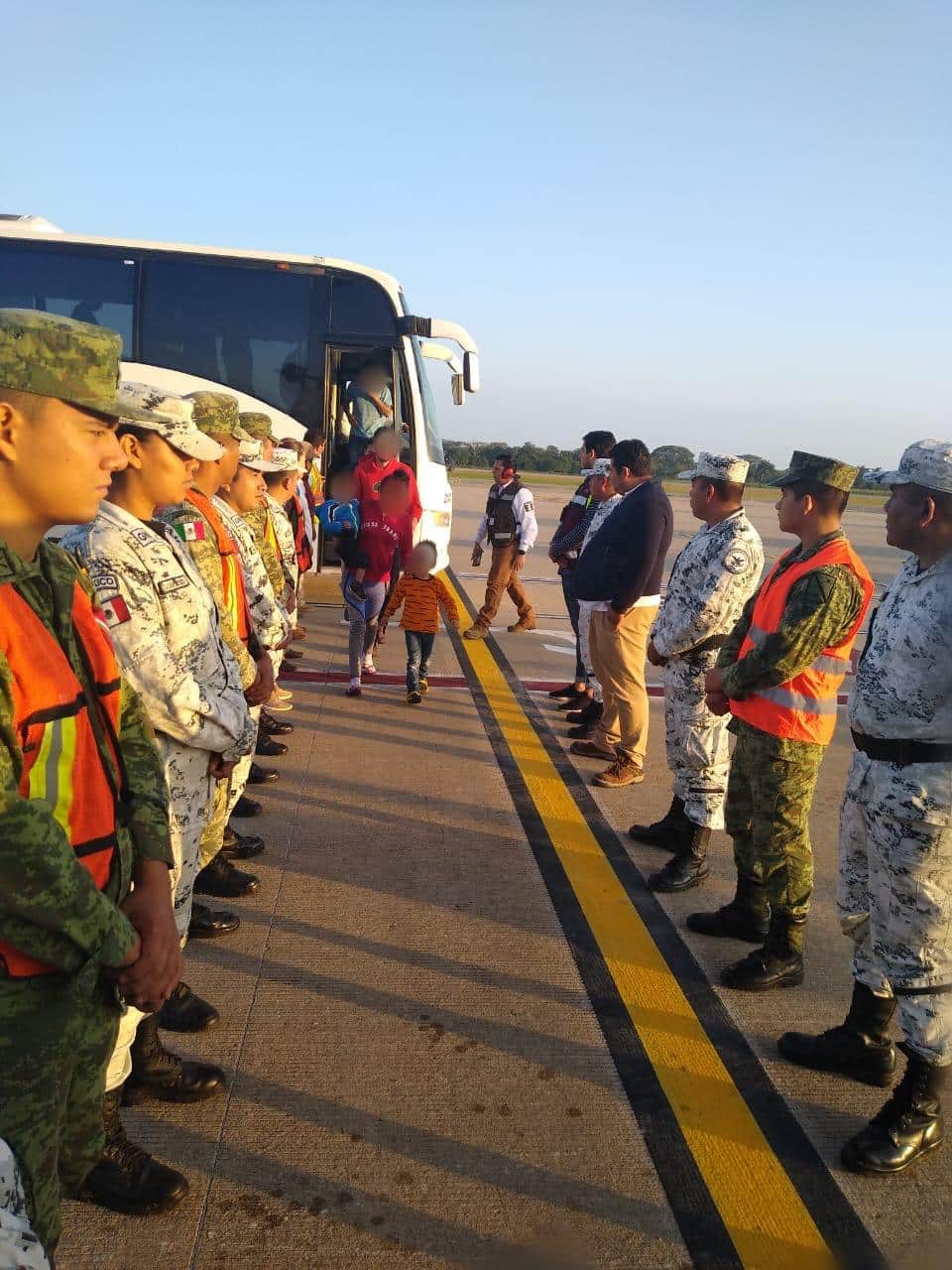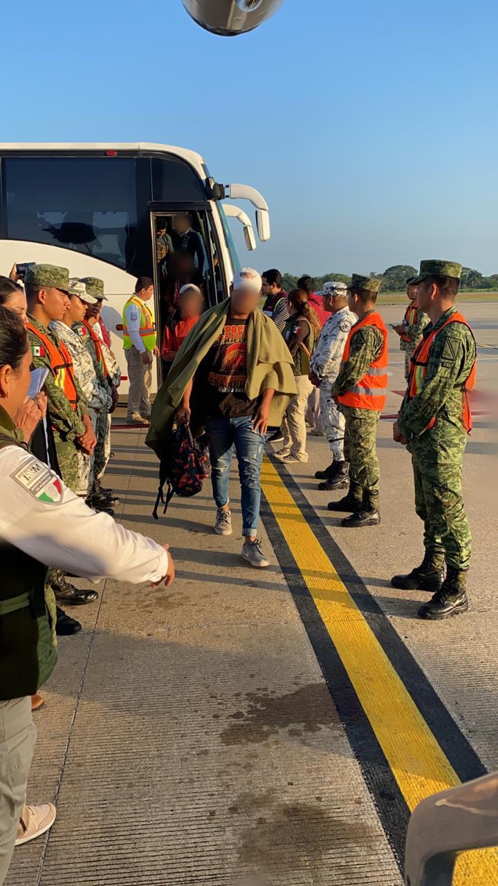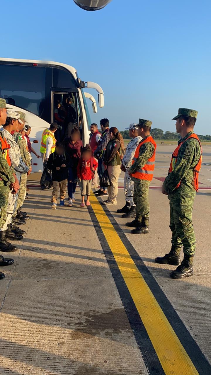 A las 9:20 horas, una aeronave de la GN, despegó con 92 personas del Aeropuerto Internacional de Tapachula, Chiapas, con destino a San Pedro Sula, Honduras.