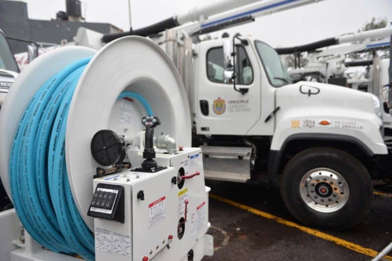 Xalapa, Ver., 24 de enero de 2020.- Luego de 15 años sin equipamiento y prácticamente al borde de la quiebra, la Comisión del Agua del Estado de Veracruz (CAEV) recibió este día, del gobernador Cuitláhuac García Jiménez, siete vehículos para limpieza de drenajes y alcantarillados, conocidos como “vactors”; también se anunció que próximamente serán adquiridas tres más.