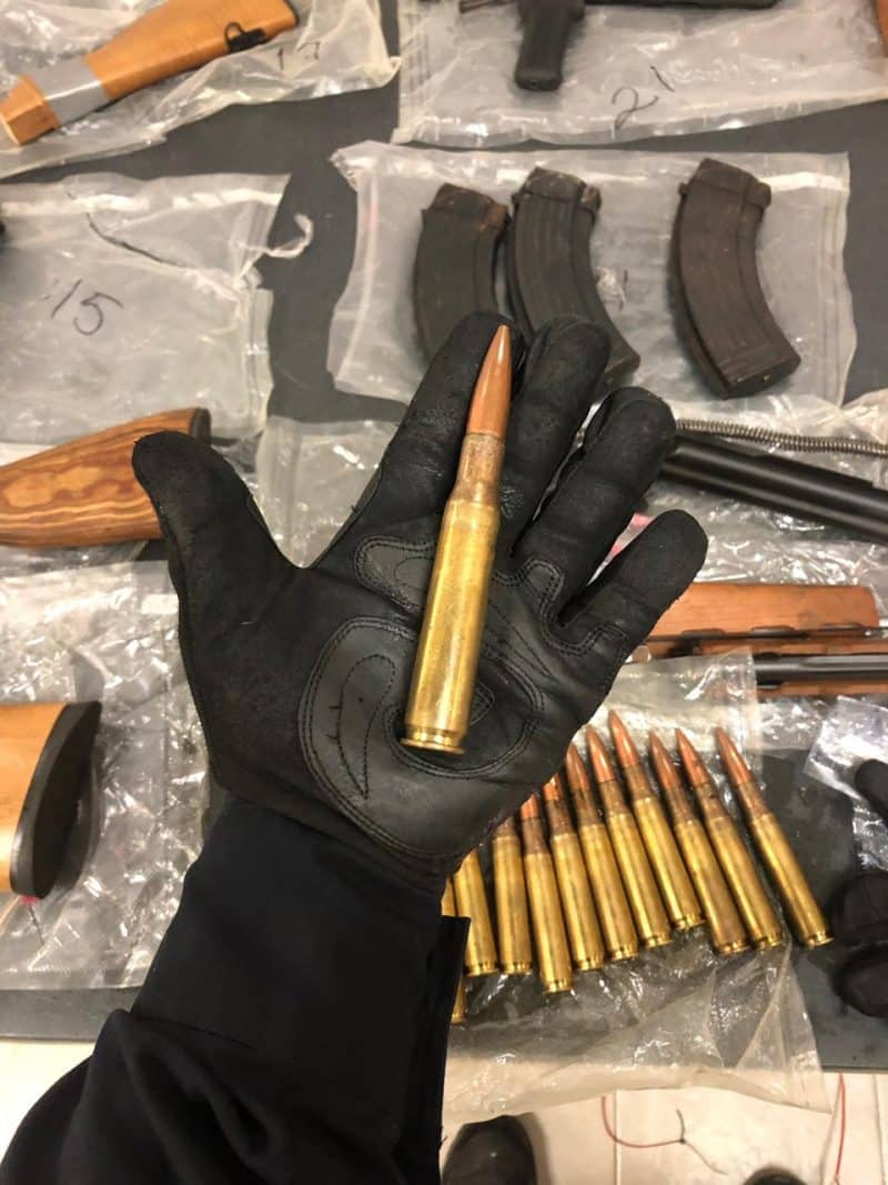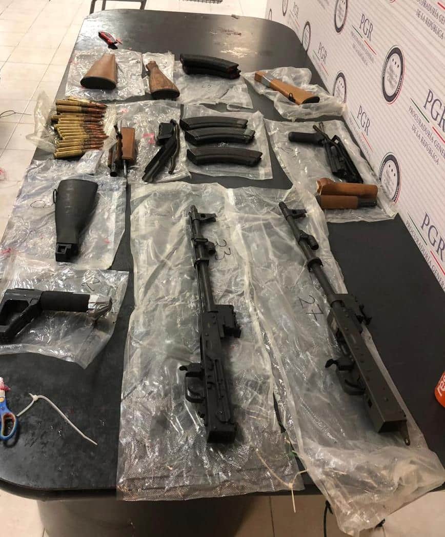 Luego de remover la manguera de abastecimiento del combustible, los guardias nacionales se percataron que había diversos envoltorios que contenían aparentemente nueve armas largas calibre 7.62x39mm, dos armas largas calibre .223mm, además de nueve cargadores calibre 7.62x39mm y dos cargadores calibre .223mm, así como diversos cartuchos útiles.
