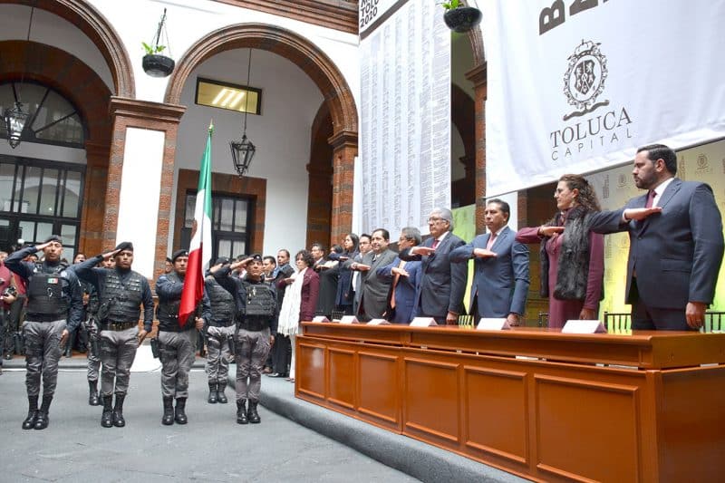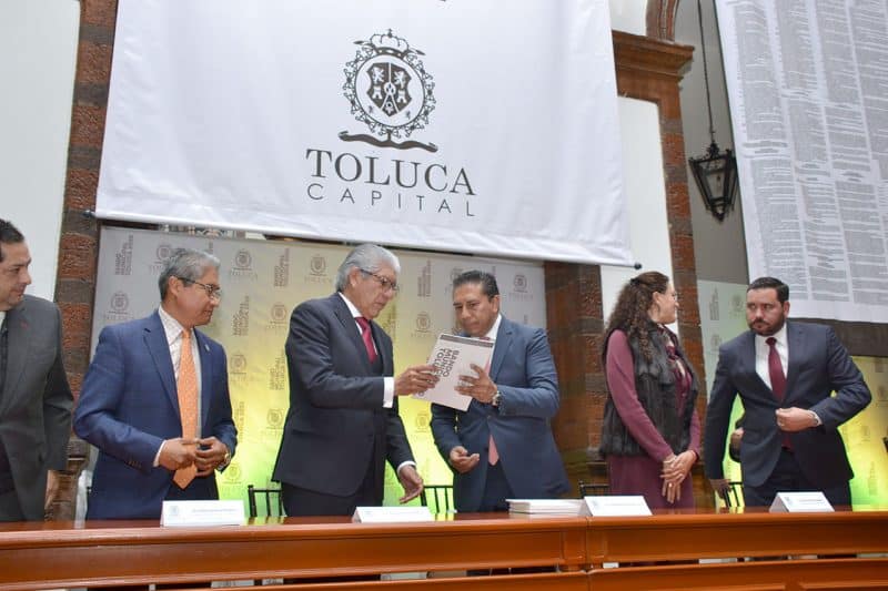 Al término de la ceremonia, Ozuna Rivero se trasladó, acompañado por el Secretario de Educación estatal, Alejandro Fernández Campillo, al Palacio Municipal de la capital mexiquense, donde se llevó a cabo la promulgación y develación del Bando Municipal de Toluca 2020, a cargo del Presidente municipal de Toluca, Juan Rodolfo Sánchez Gómez, con quien hizo entrega simbólica de este documento a autoridades municipales, así como a representantes de los Poderes Ejecutivo, Legislativo y Judicial del Estado de México