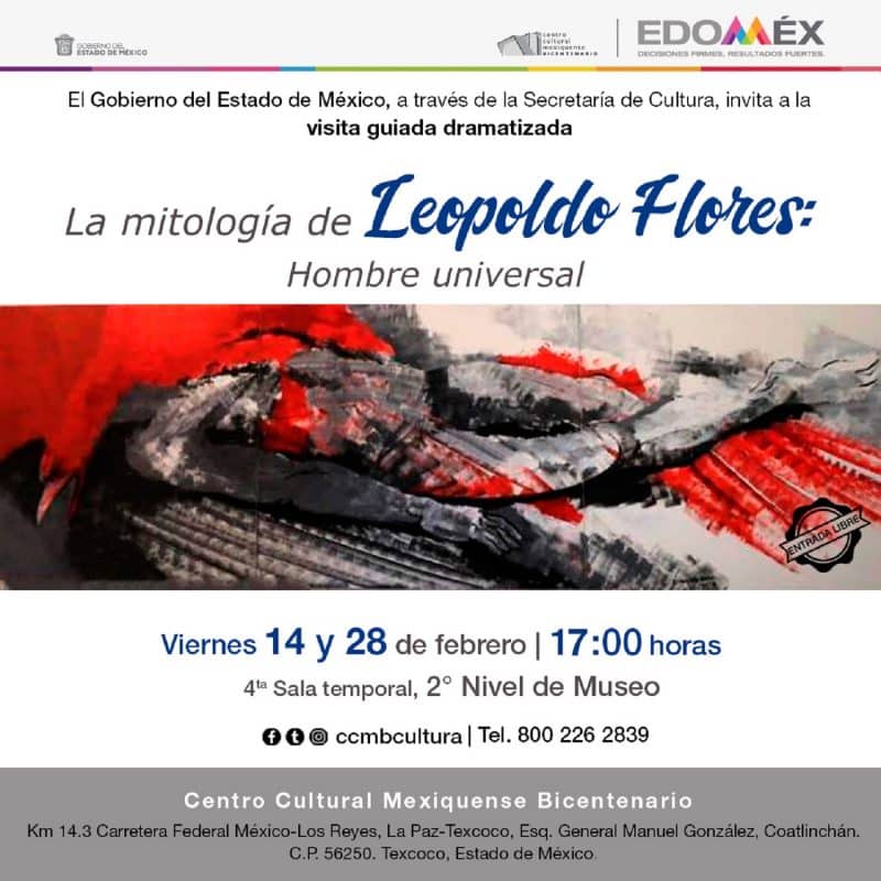 La Noche de museos estará dedicada a enaltecer la memoria del artista mexiquense Leopoldo Flores, con una visita guiada dramatizada que se desarrollará el 14 de febrero a las 14:00 horas, titulada “La mitología de Leopoldo Flores: Hombre Universal”, donde la vida y obra del pintor cobrará vida.