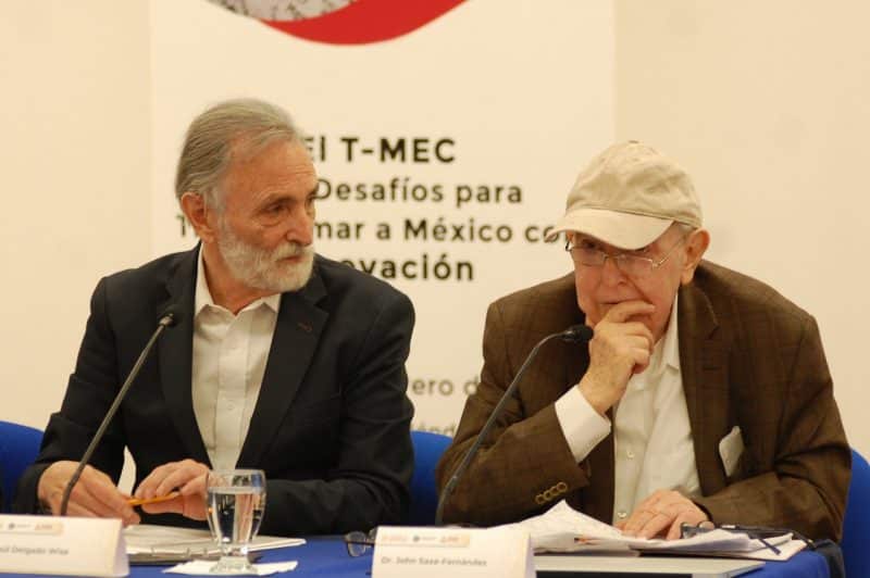 Durante su intervención, el Dr. John Saxe-Fernández, académico del Centro de Investigaciones Interdisciplinarias en Ciencias y Humanidades de la UNAM, alertó sobre los riesgos que representa el T-MEC para México, sobre todo en el capítulo 14 y sus respectivos anexos. Para Saxe-Fernández, estos riesgos son incluso mayores respecto a su antecesor, el Tratado de Libre Comercio con América del Norte (TLCAN). “El T-MEC es un tratado trilateral, pero donde Estados Unidos bilateraliza la relación con Canadá y con México, obteniendo grandes ventajas. Desde nuestra perspectiva, es un Estatocidio, es decir, la muerte del Estado-nación”, dijo.