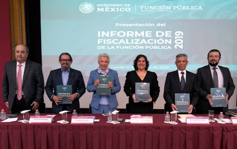 Ante miembros del gabinete legal y ampliado, la secretaria Sandoval Ballesteros inscribió la presentación del Primer Informe de Fiscalización de la Función Pública 2019 en su compromiso de fortalecer la transparencia democrático-expansiva y la rendición de cuentas en México para promover una nueva ética pública con austeridad republicana, probidad, eficacia y legalidad en la Administración Pública Federal (APF).