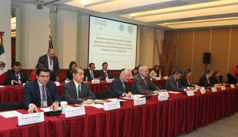 Representantes de alto nivel de los gobiernos de México y Estados Unidos se dieron cita hoy en la sede de la Secretaría de Relaciones Exteriores en la Ciudad de México en el marco de la XII Reunión Plenaria del Comité Ejecutivo Bilateral para la Administración de la Frontera en el Siglo XXI a fin de fortalecer la colaboración bilateral en temas prioritarios en nuestra frontera común.