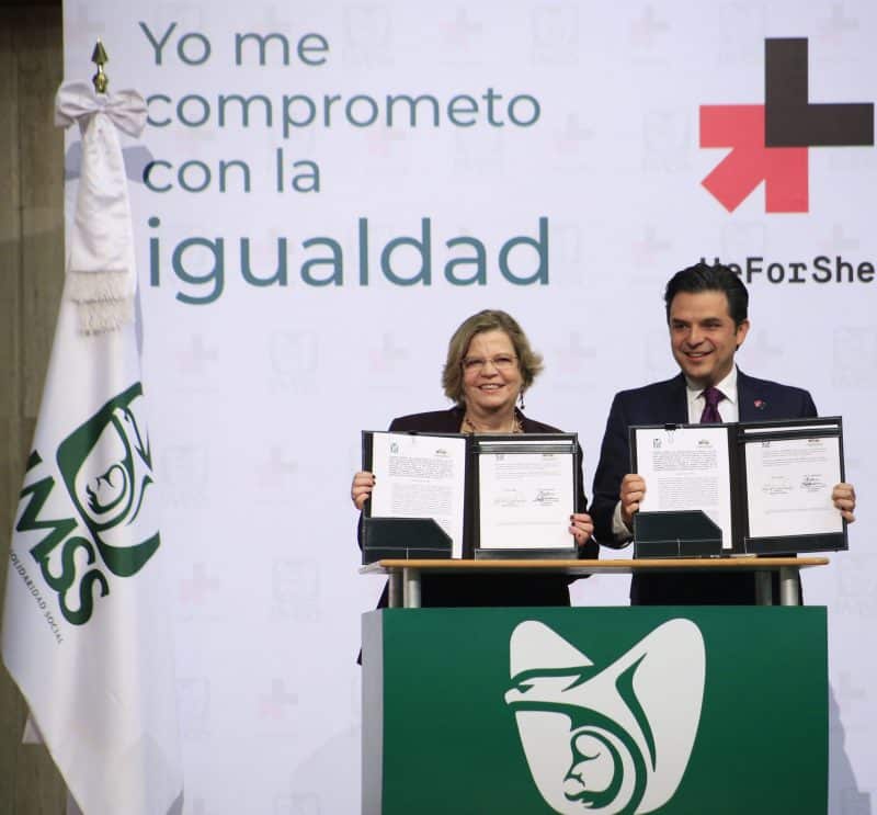 En el marco del Día Internacional de la Mujer, que se conmemora el 8 de marzo, signaron hoy este acuerdo el director general del IMSS, Zoé Robledo, y la representante de ONU Mujeres en México, Belén Sanz Luque, acción con la que el Instituto más grande de seguridad social en América Latina se compromete a ser agente de cambio por la igualdad.