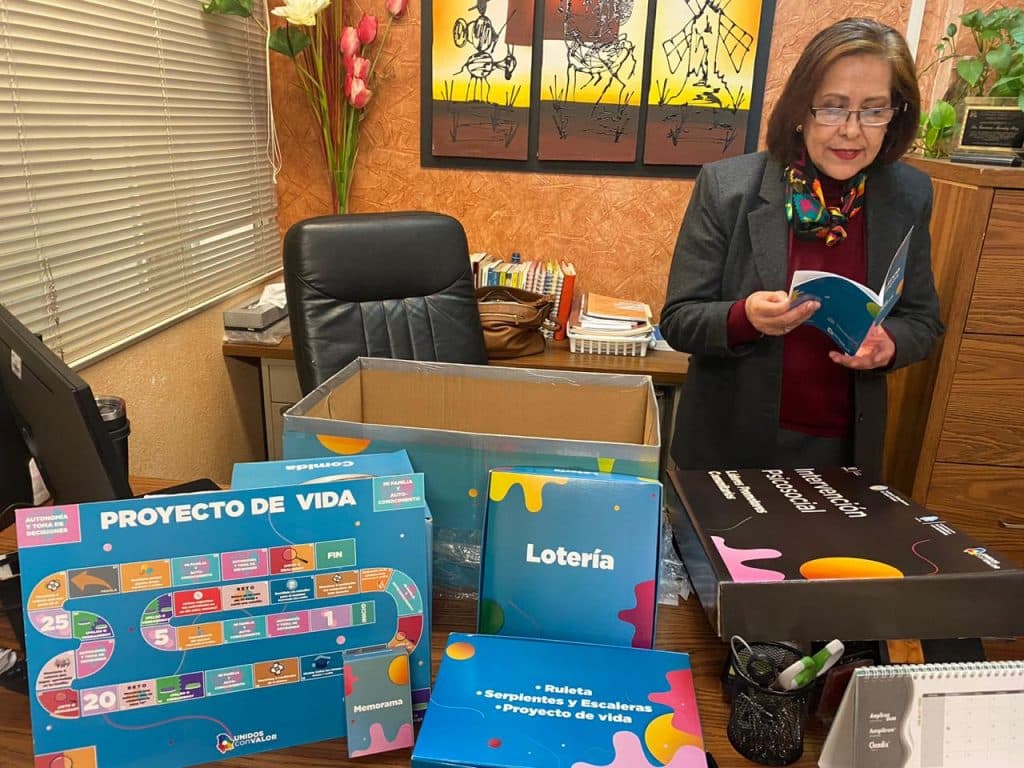 El material utilizado contempla actividades como: lotería de salud mental y adicciones, memorama de habilidades para la vida, ruleta, cubo de emociones, serpientes y escaleras de factores de riesgo y protección, y proyecto de vida.
