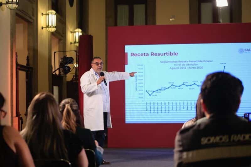 Dijo que con este mecanismo el paciente recibe consulta cada tres meses, en la cual se le entregan tres recetas canjeables, una para cada mes. Sólo en el mes de marzo se entregaron más de 914 mil recetas resurtibles, “casi un millón de personas que dicen: yo prefiero quedarme en casa y que vayan por mis medicamentos mi conocido, amigo o familiar”.