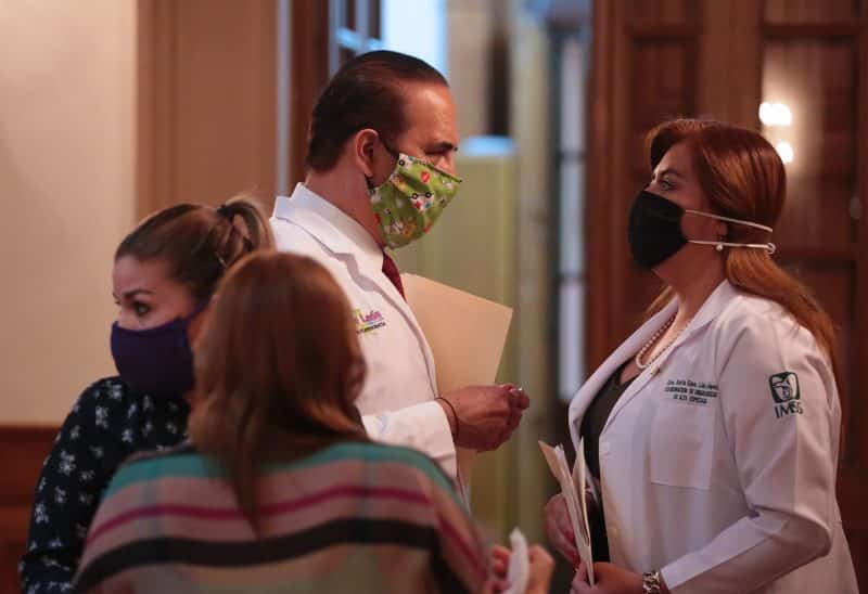Durante la rueda de prensa, el funcionario estatal estuvo acompañado de la Delegada Estatal del IMSS, Karla López López, quien manifestó que la institución está preparada para la atención de pacientes y a la fecha se han capacitado más de nueve mil trabajadores en el manejo de pacientes, residuos y vestimenta.