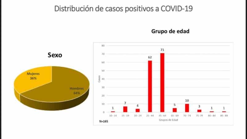 La información muestra que el 64 por ciento de los afectados son hombres y 36 mujeres. Además suman ya 350 los casos descartados, 223 sospechosos y hay 17 recuperados de 515 pruebas realizadas.