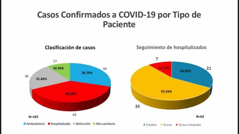 Además, de los confirmados 63 se encuentran hospitalizados, de los cuales 21 están estables, 35 en condición grave y 7 en condición de grave intubado; otros 49 se encuentran en tratamiento ambulatorio.