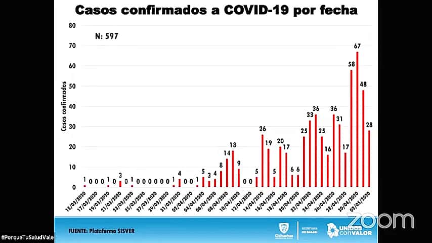 En Chihuahua aumentan a 597 los casos confirmados por COVID-19 con 98 defunciones