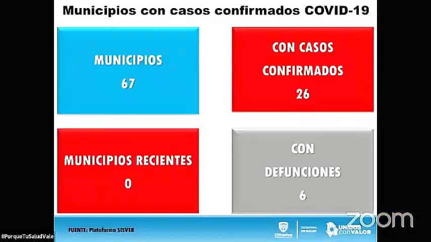 Valenzuela añadió que de los pacientes confirmados, 265 se encuentran hospitalizados, de los cuales 82 se encuentran estables, 174 en condición grave y 9 en condición grave intubado. Otros 194 mantienen un tratamiento ambulatorio.