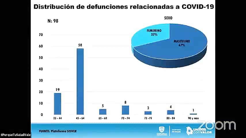 Mencionó que de las personas que desafortunadamente perdieron la vida a causa de la pandemia, 80 radicaban en Ciudad Juárez, 14 en la ciudad de Chihuahua, y uno en cada uno de los municipios de Cuauhtémoc, Guadalupe, Ascensión y Camargo.