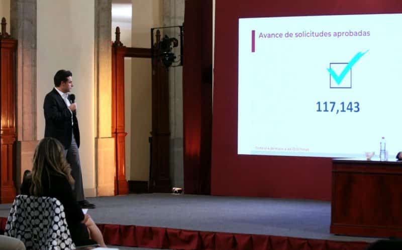 El director general del Instituto Mexicano del Seguro Social (IMSS), Zoé Robledo, indicó que se han dispersado 90 mil 294 créditos solidarios a la palabra a pequeños empresarios, es decir, se han entregado alrededor del 90 por ciento de los 117 mil 143 créditos que se han aprobado hasta el momento.