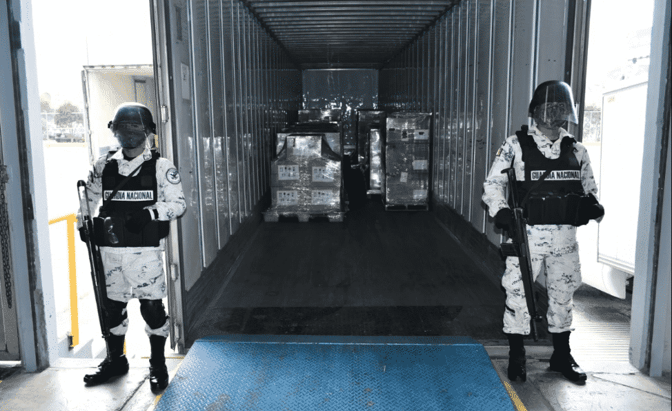 El día de ayer, los guardias nacionales brindaron seguridad en el traslado de ventiladores del Aeropuerto Internacional de Toluca, Estado de México, al almacén del Instituto de Salud para el Bienestar (Insabi) en la Ciudad de México, los cuales llegaron de Estados Unidos, y el trabajo de seguridad continuará hasta que lleguen a las entidades que más lo requieren.