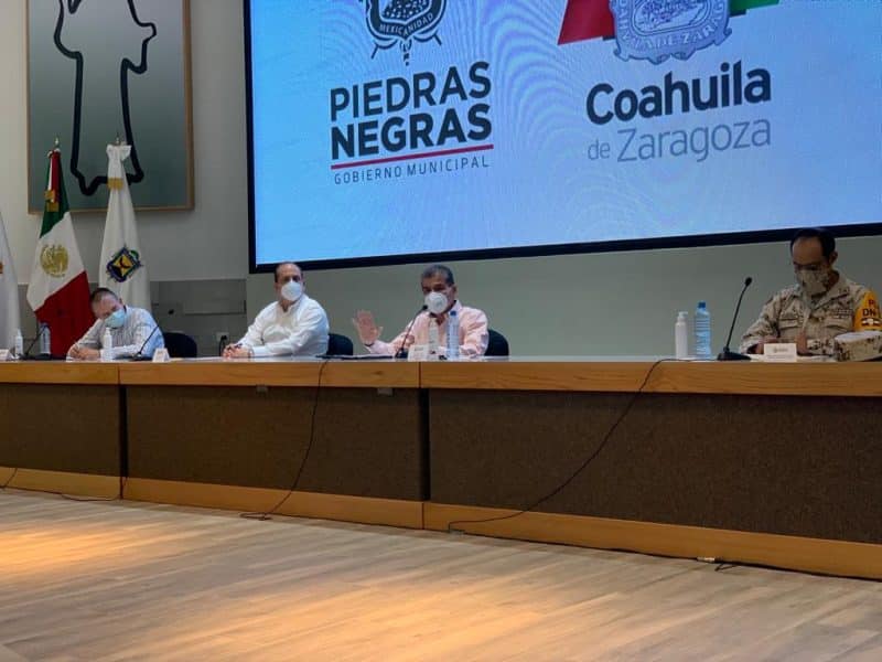 Así como el Comandante de la Guarnición Militar de la Plaza, General, Sergio Ángel Sánchez García, y el Coordinador de la Guardia Nacional en Piedras Negras, Gustavo Campos Armendáriz.