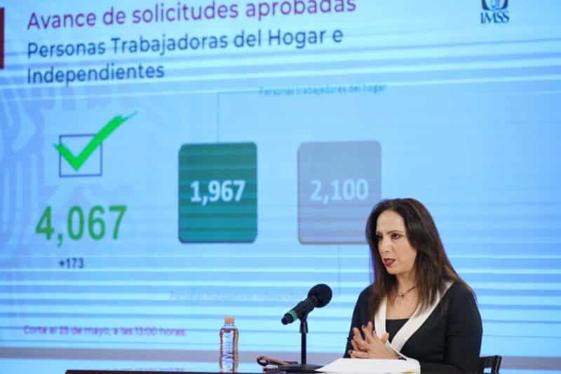 Como parte de los apoyos que otorga el gobierno federal durante la emergencia sanitaria, cuatro mil 67 solicitudes de personas trabajadoras del hogar e independientes afiliadas al Instituto Mexicano del Seguro Social (IMSS) han sido aprobadas para recibir un Crédito Solidario a la Palabra, informó la directora de Incorporación y Recaudación, Norma Gabriela López Castañeda.