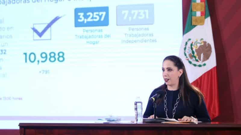 En otro orden de ideas, Norma Gabriela López Castañeda informó que al viernes 12 de junio se han aprobado 10 mil 988 solicitudes de apoyos solidarios a la palabra para personas trabajadoras del hogar y trabajadores independientes afiliados al IMSS.