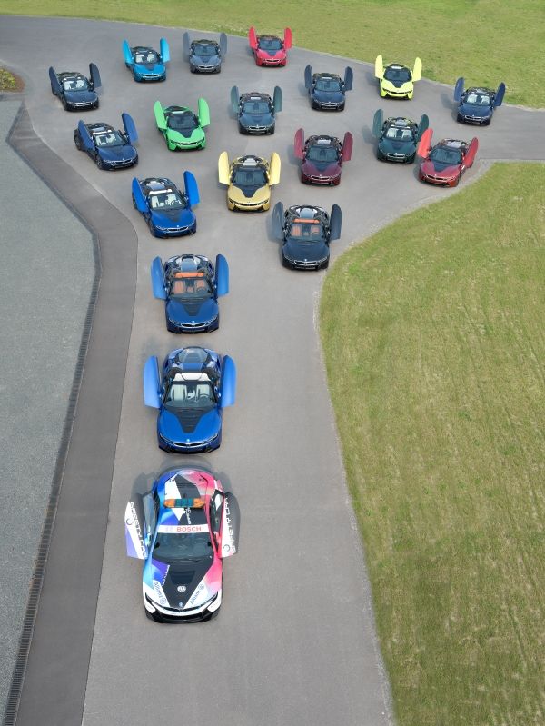Colores como Austin Yellow, British Racing Green o Le Mans Blue. Los últimos 18 vehículos BMW i8 salieron de la planta de BMW Group en Leipzig hoy mientras sus futuros propietarios observaban. Cada vehículo fue una colaboración única creada con el cliente. «El grado de personalización en estos vehículos arrojó algunos desafíos logísticos y de proceso importantes», dijo el director de la planta, Hans-Peter Kemser. «Pero nuestra unidad de producción BMW i ha demostrado una vez más que nada es imposible.»
