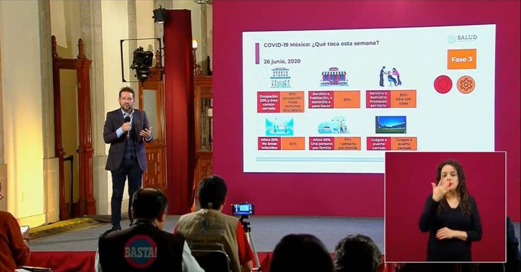 Se explicó que, aunque hay estados que tienen indicadores en verde y amarillo, para extremar precauciones se tomó la decisión de respetar el indicador de máximo riesgo, por lo que 15 entidades quedaron en semáforo rojo y los 17 restantes quedaron en semáforo naranja.
