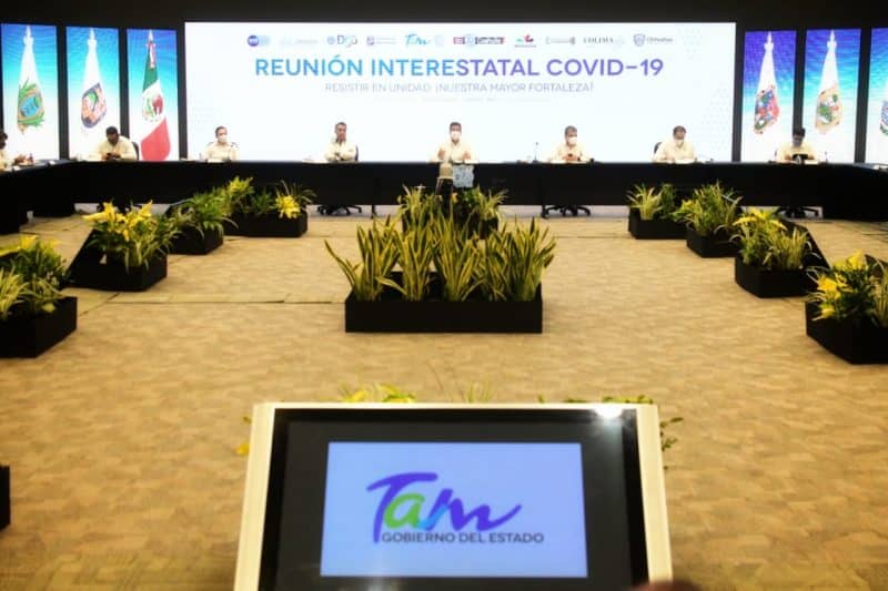 Tampico, Tamaulipas; a 26 de Junio de 2020.- Con la integración de Chihuahua a las Reuniones Interestatales Covid-19, los 9 gobernadores que participaron en esta reunión se solidarizaron con la Jefa de Gobierno de la Ciudad de México, Claudia Sheinbaum Pardo, luego del atentado que sufrió su Secretario de Seguridad Ciudadana, Omar García Harfuch, a manos de un grupo del crimen organizado.