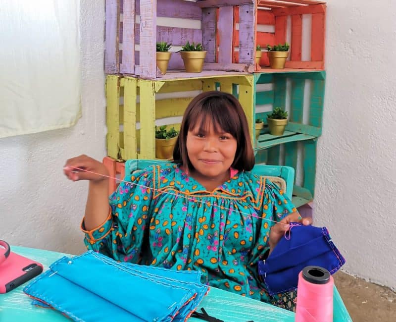 “Sinibí Jípe siempre ha buscado tener un impacto social en todos los sentidos, y en este caso en la pandemia pues nos tocó esto: cobijar a las mujeres ralámuli que se quedaron sin trabajo, y vender una ronda de cubrebocas, primero a una persona en Estados Unidos, que organizaba una actividad para juntar fondos para comprar equipo médico que se donaría a hospitales de Ciudad Juárez, y ahora a Volaris”.