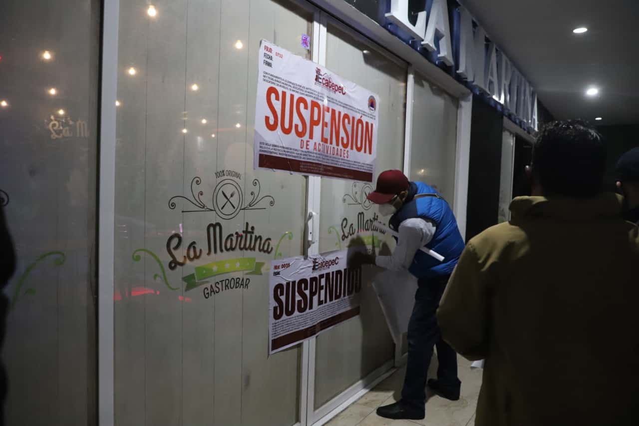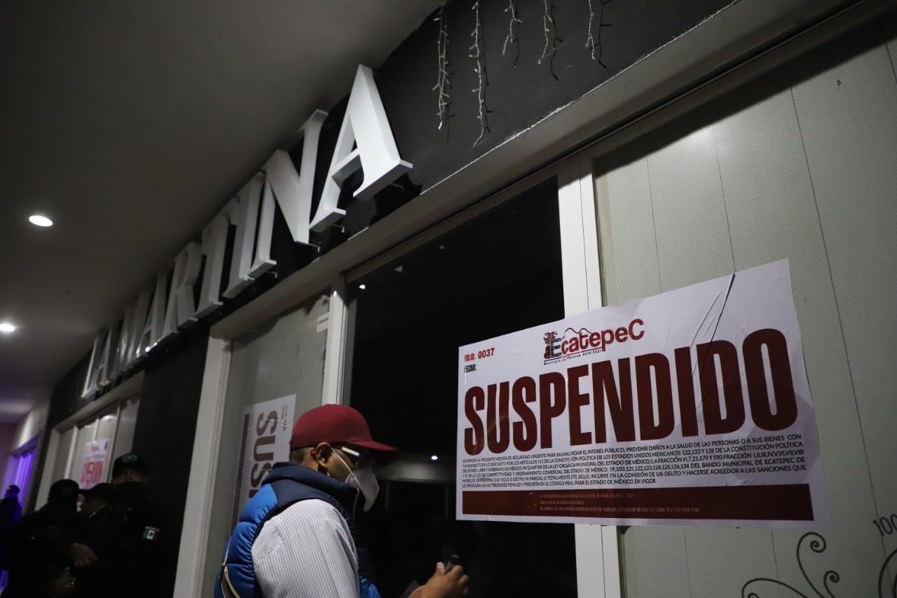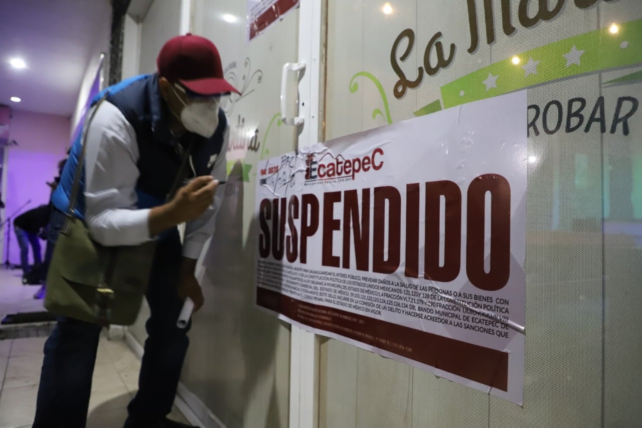 Como parte de las acciones que realiza personal de las direcciones de Protección Civil, Desarrollo Económico, Desarrollo Urbano y Seguridad Pública, entre otras, se colocaron sellos de suspensión en los establecimientos, que no contaban con las licencias pertinentes para su legal funcionamiento, además de aglomerar personas y desacatar las medidas sanitarias, pues en Ecatepec prevalece el semáforo sanitario en rojo.