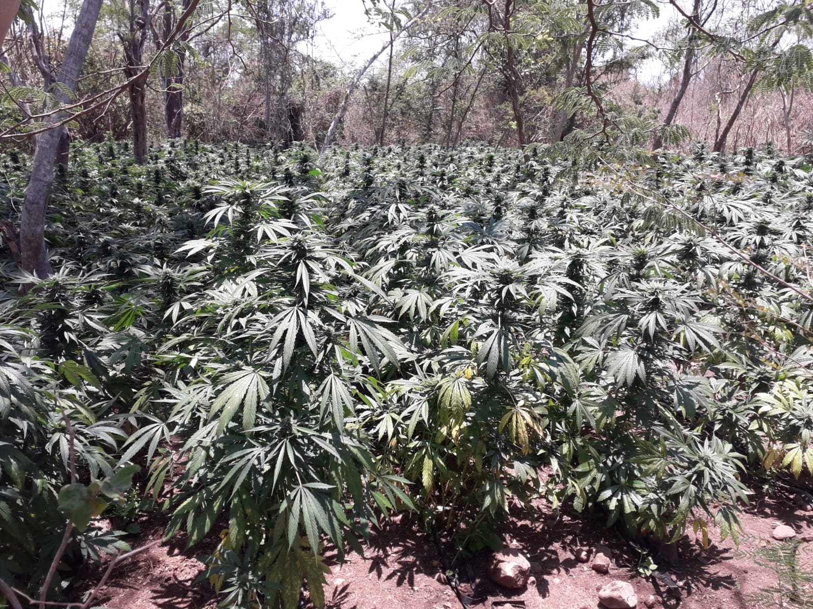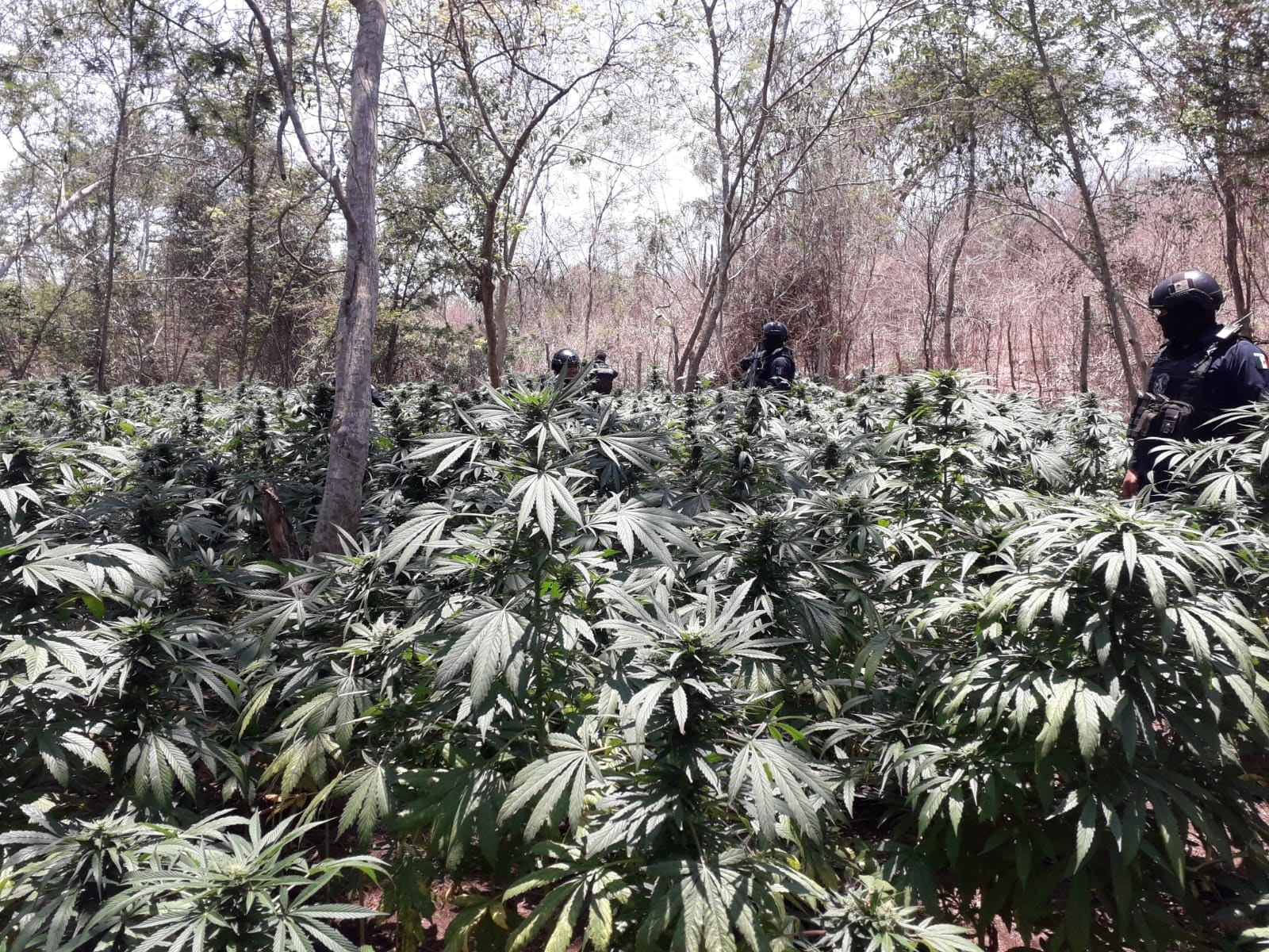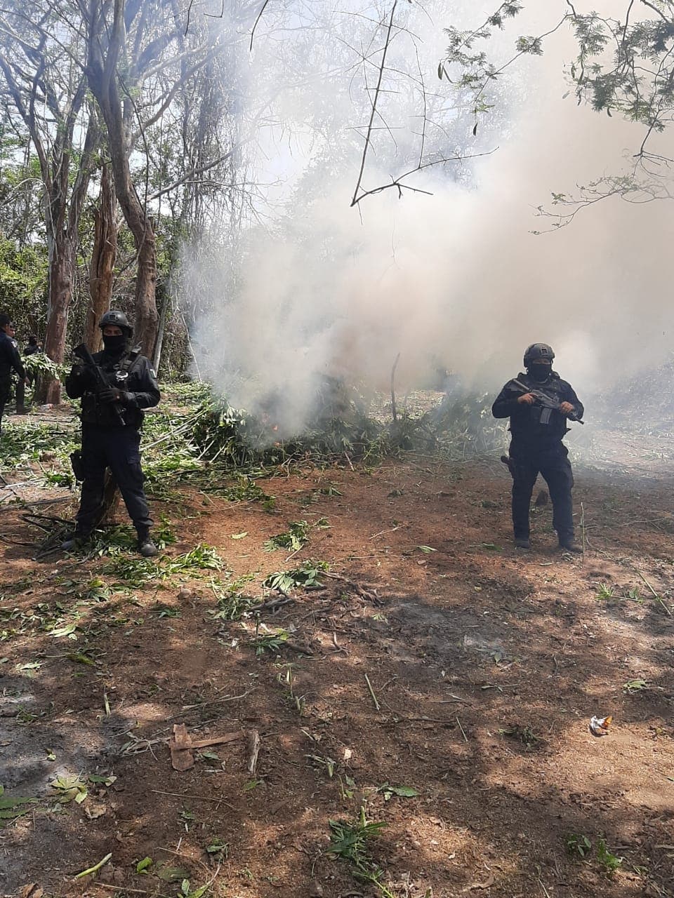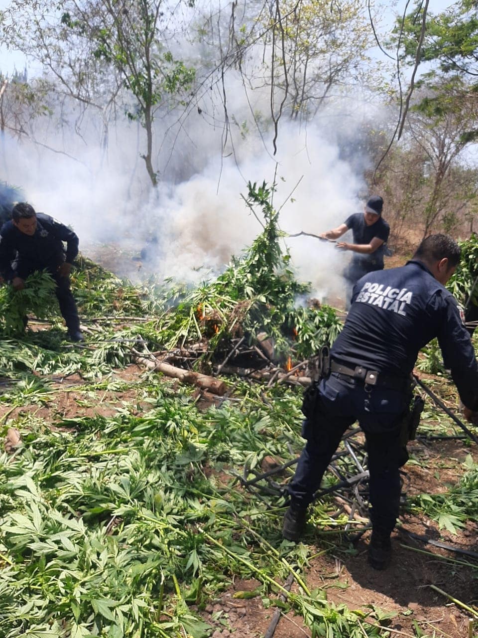Se ubicó un sembradío con una extensión de más de mil metros cuadrados con un aproximado de 25 mil plantas del presunto enervante por lo que se procedió al aseguramiento, destrucción y quema del mismo.